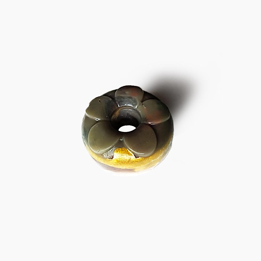 The Golden Ratio Soap features a perfectly balanced petal design encircling a central opening. Soft stone-like tones blend with touches of warm gold, creating a refined, antique glow. The gentle shimmer catches the light like aged gilding, giving the piece an elegant, sculptural presence.