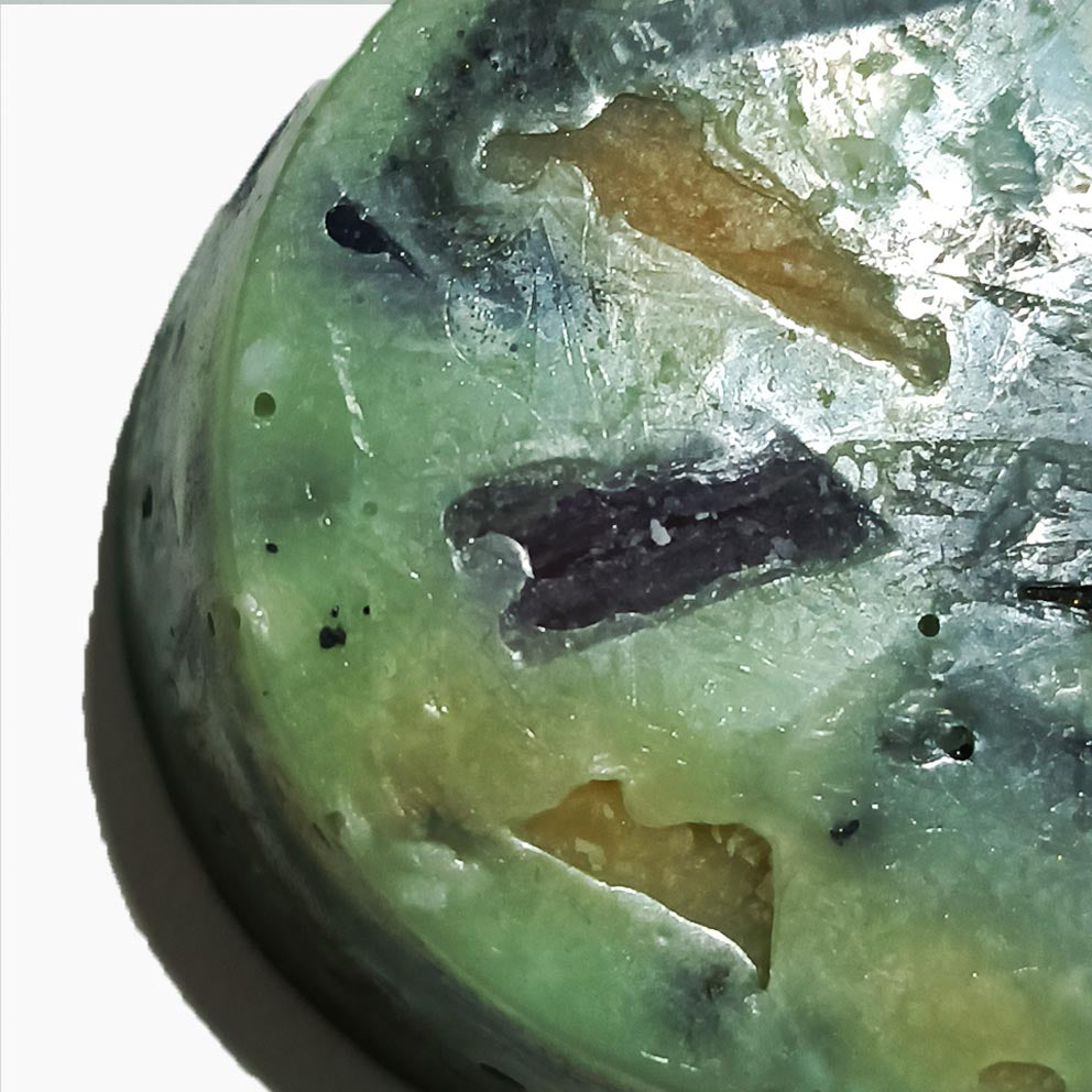 Green Dynamite is a bold, eco-conscious zero waste soap bar handcrafted from rescued soap offcuts that have been melted down and transformed into a brand-new, one-of-a-kind bar. Its vibrant green base with natural mosaic pieces gives each bar a striking, explosive look with a layer of gold.